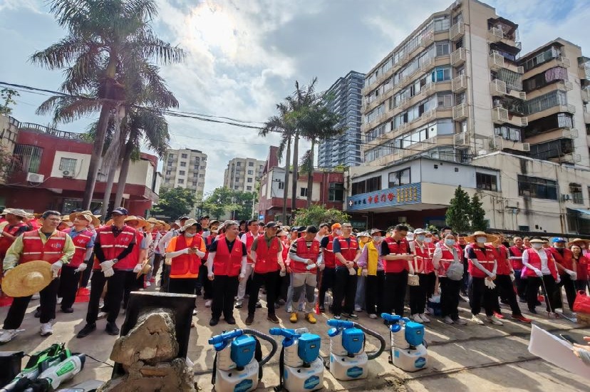 本次行动,南海区政府副区长曾法强带队,桂雅社区、南海国资系统、天地正律师所等200余名志愿者参加。上午9点,曾法强副区长发表动员讲话,号召全体志愿者积极担当,彻底解决机床厂的蚊虫隐患。后大家分区域有序开展工作。