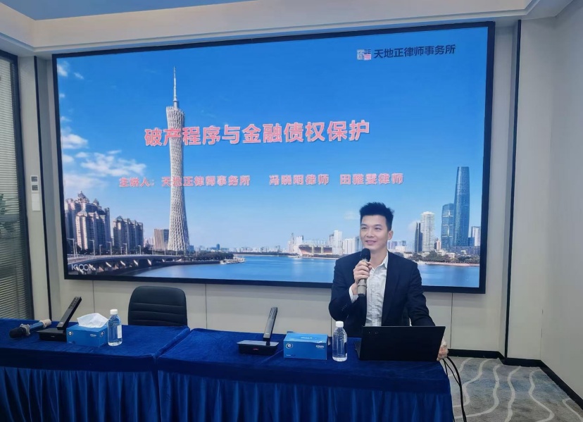 2025年11月17日下午,天地正律师所应邀为中国农业银行股份有限公司清远分行开展《破产程序与金融债权保护》讲座。其法律部、内控部、资处中心人员参加。天地正律师所企业重整清算中心业务三部部长田雅雯律师、金融公司部负责人冯晓明律师主讲。