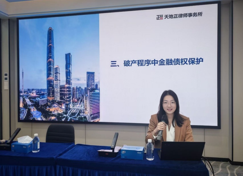 田雅雯律师以破产程序中金融债权的保护为切入点,详细讲解了保护金融债权的具体措施,分享了天地正律师所承办的六宗典型破产案例。她从具体案例出发,为金融债权的追偿与权益保障提出了详细建议。