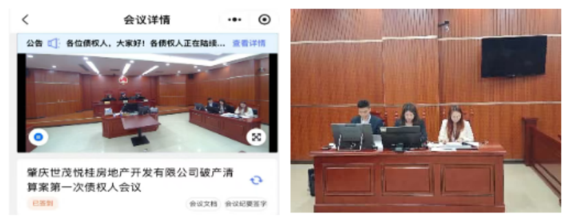2026年3月23日上午,肇庆世茂悦桂房地产开发有限公司破产清算案【(2025)粤1202破19号】第一次债权人会议,在肇庆市端州区人民法院主持下顺利召开。600多户债权人线上参会。天地正律师所副主任胡敏芝律师等13名律师作为管理人代表参会。