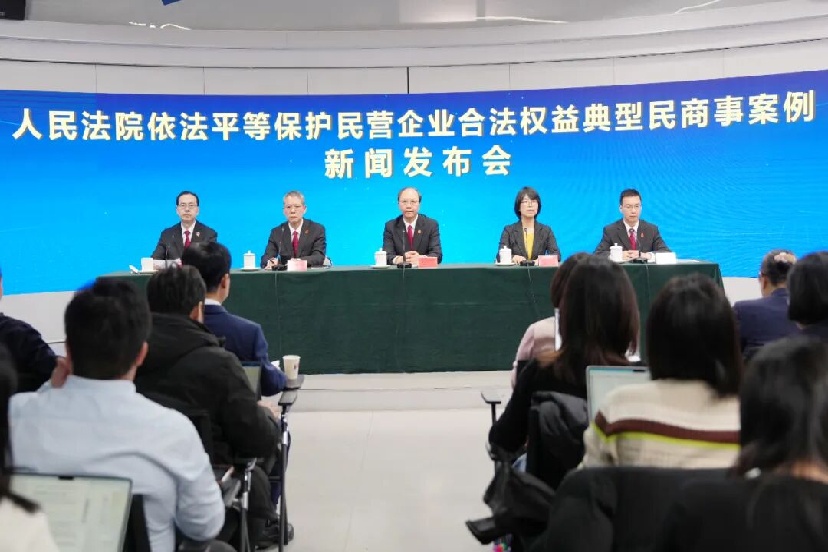 2025年12月4日,最高人民法院召开新闻发布会,发布人民法院依法平等保护民营企业合法权益典型民商事案例,并回答记者提问。最高人民法院民二庭庭长王闯、民二庭副庭长周伦军、民二庭副庭长王朝辉、全国工商联法律服务部部长涂文出席发布会,最高人民法院新闻局副局长姬忠彪主持。会议还邀请了全国人大代表吕卉、陈灿、尚瑞芬、周曙光、潘保春,全国政协委员黄宝荣,企业家代表游洪涛,中国政法大学教授、最高人民法院特邀咨询员李曙光出席。